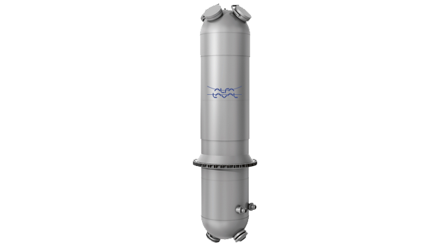Os trocadores de calor de placas combinados de alimentação/efluente Alfa Laval Packinox são compostos por um bloco de feixe soldado e um vaso de pressão.